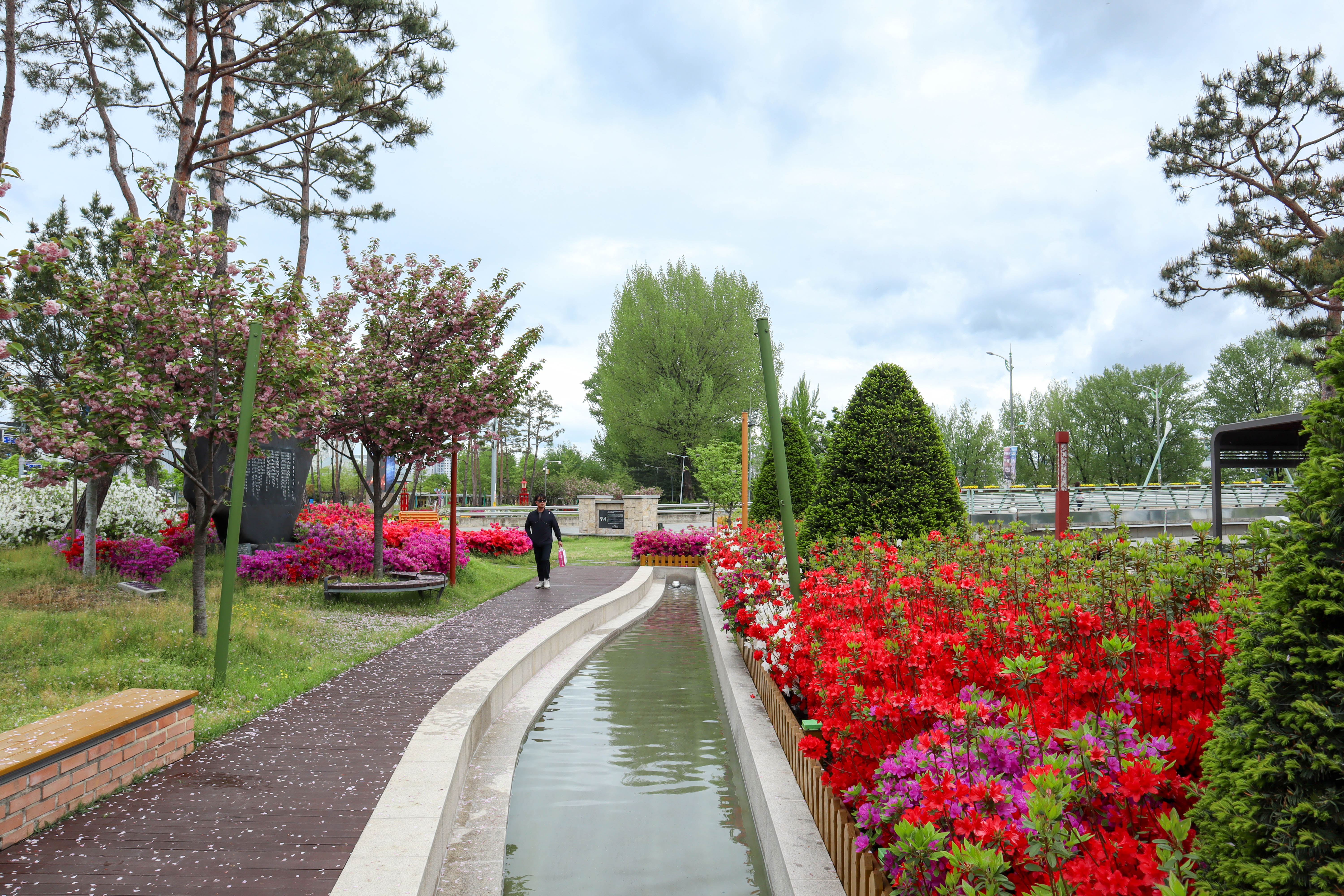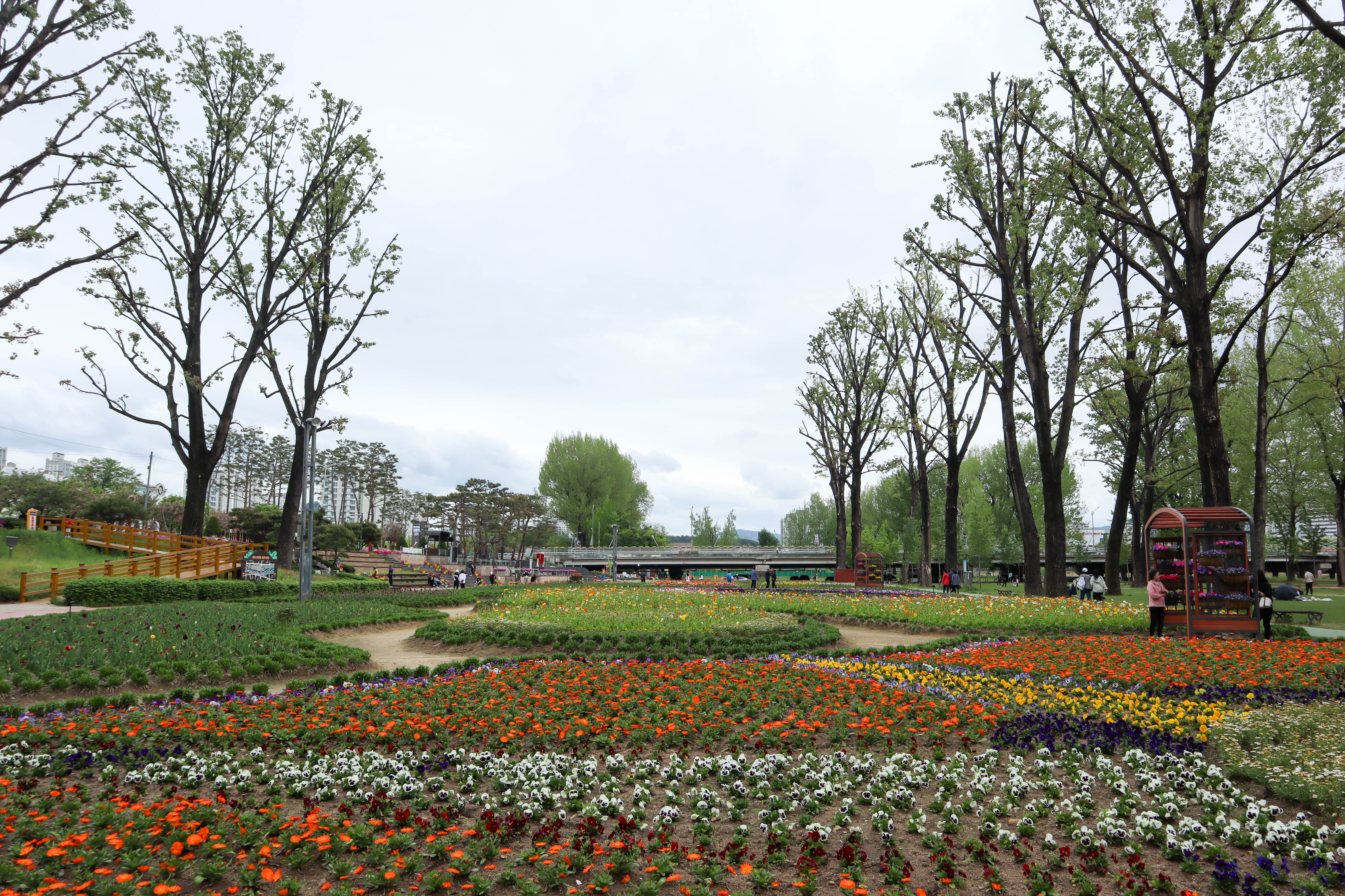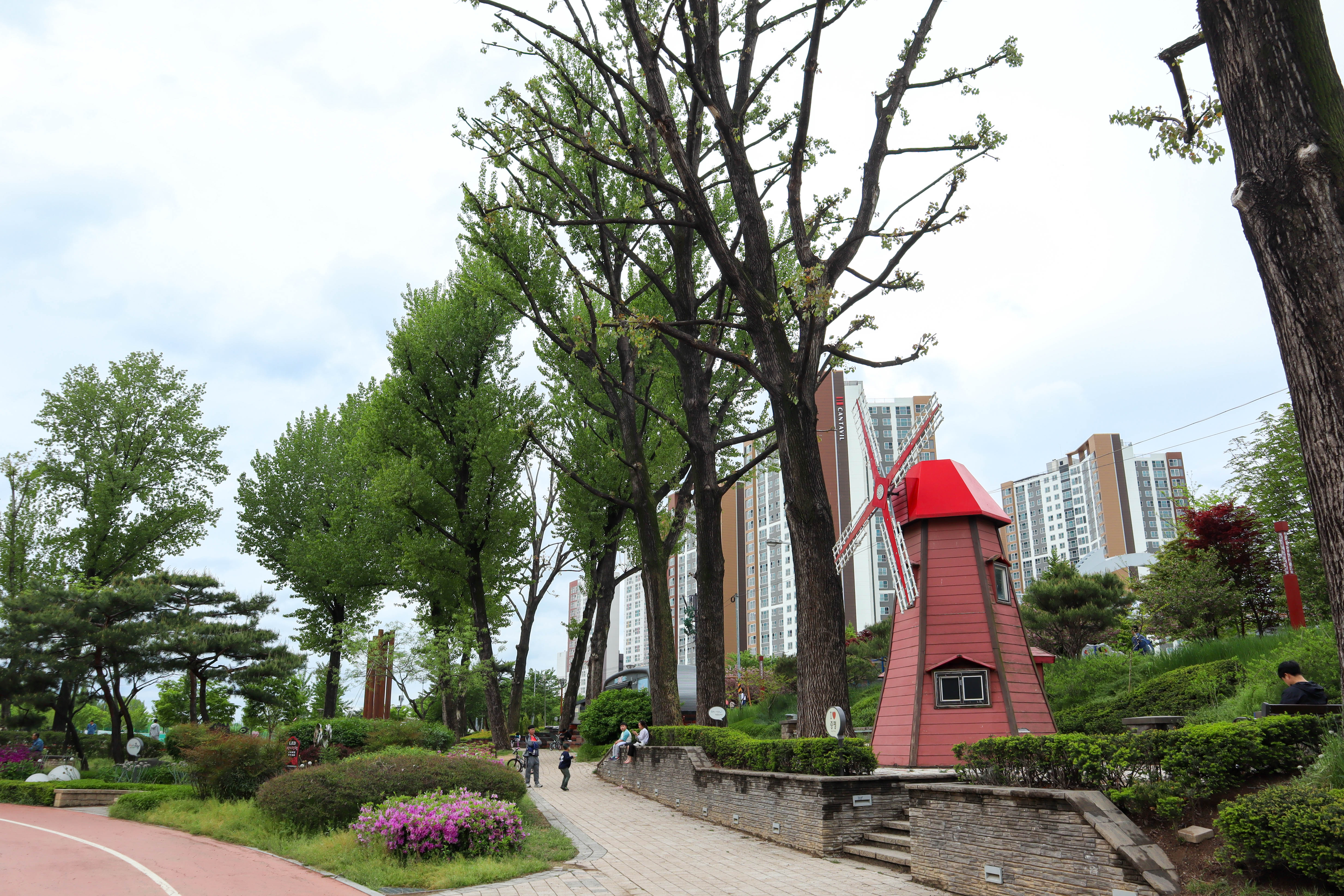 꽃밭과 미루나무를 구경하면서 돌다보면