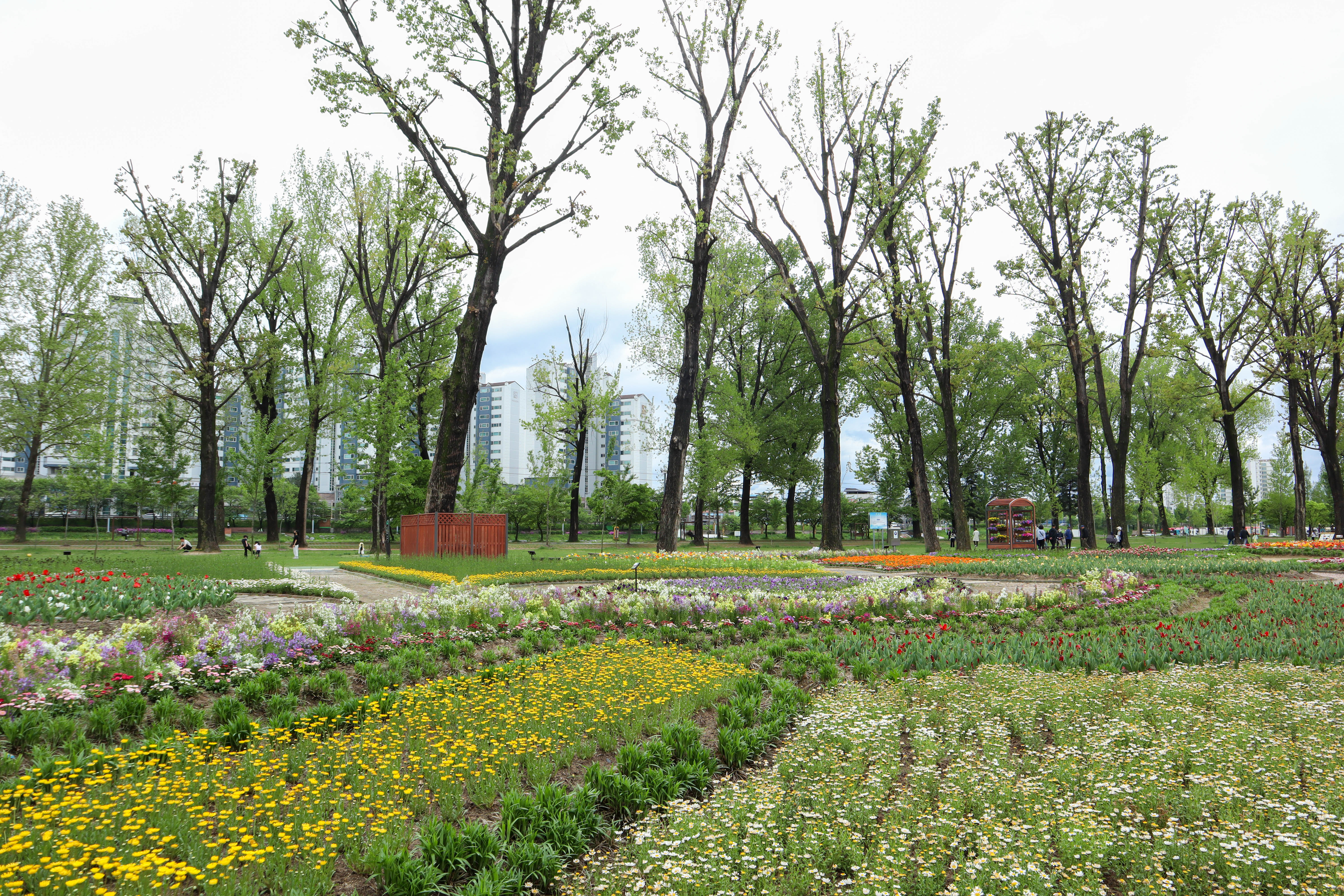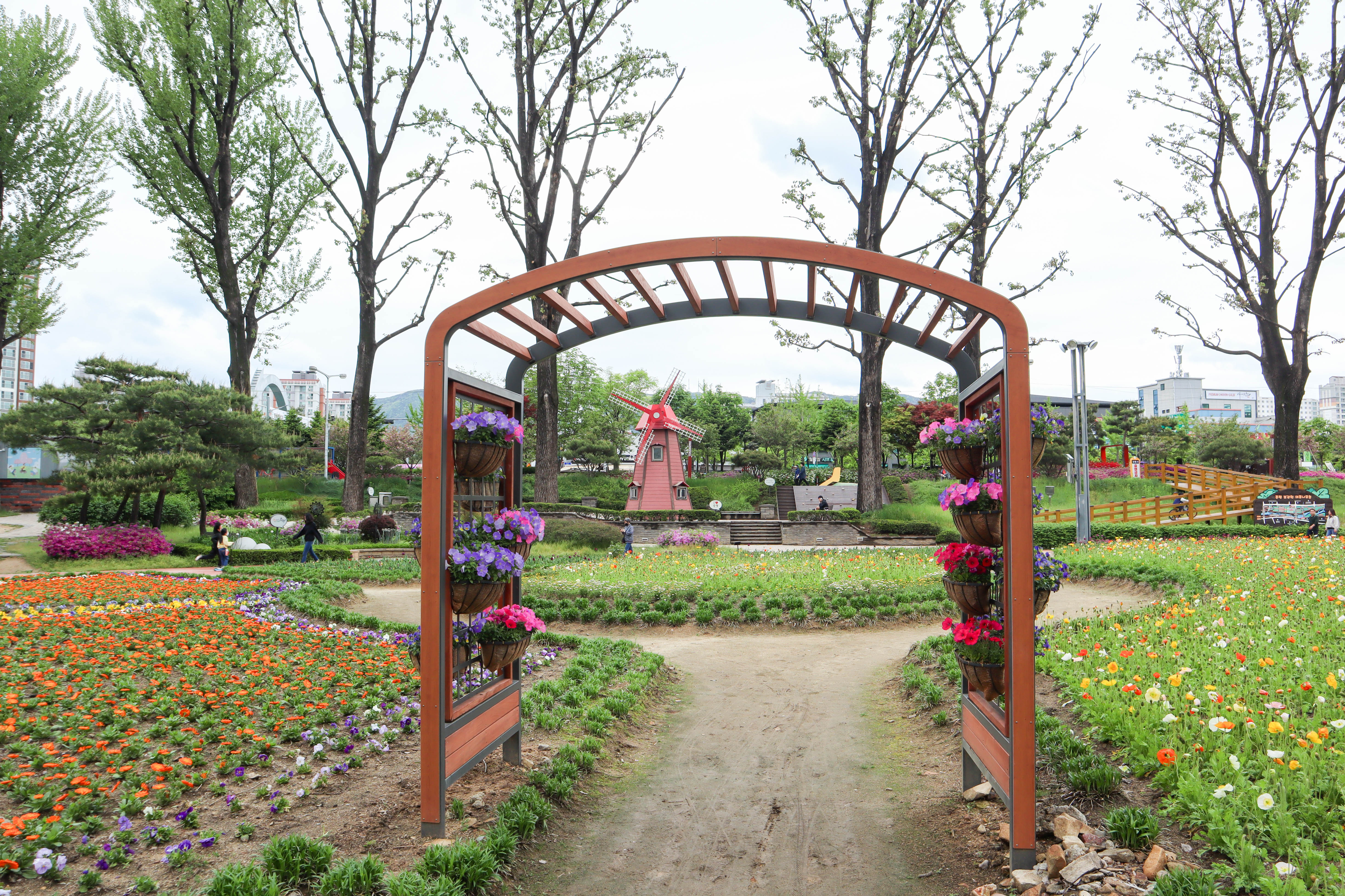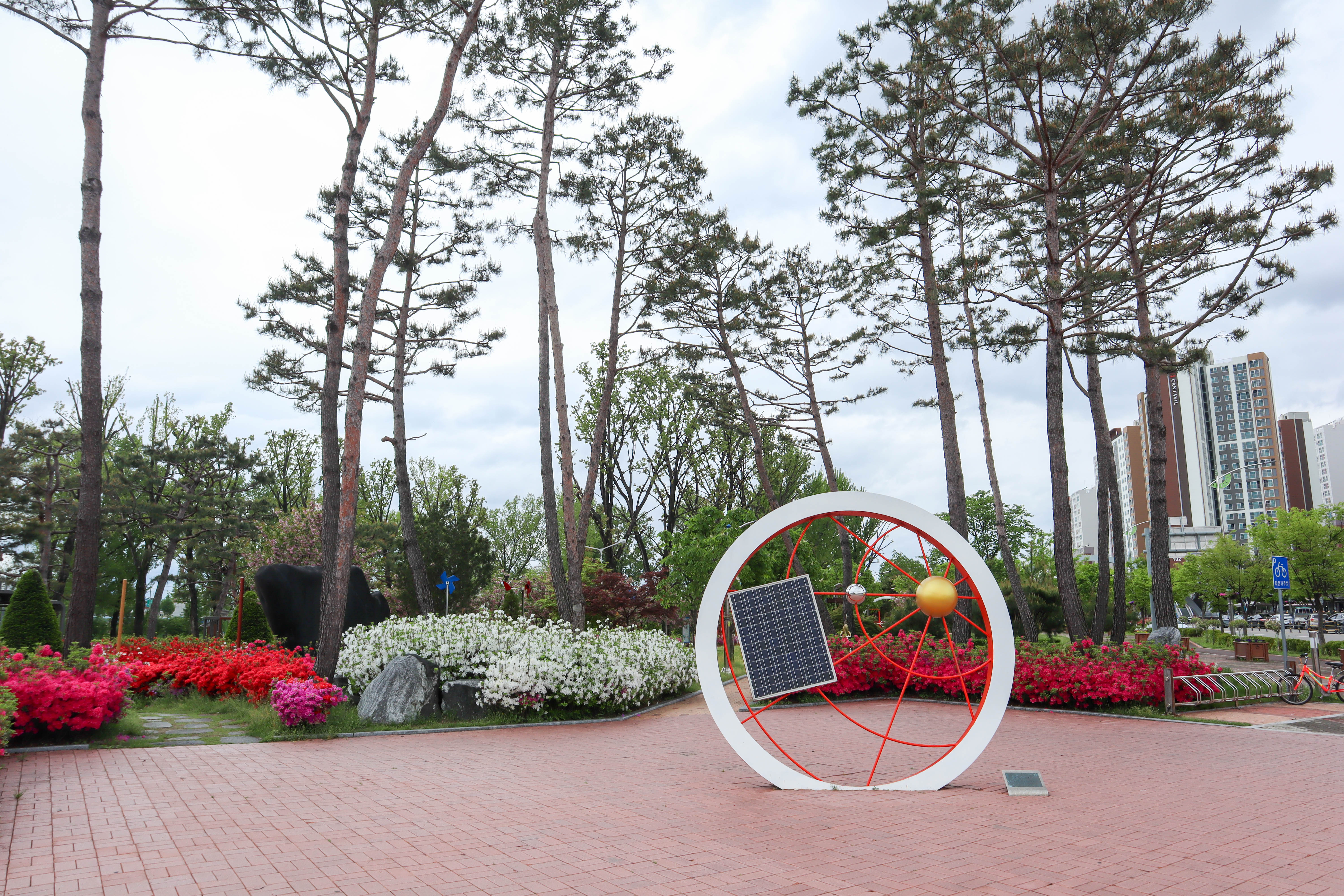 꽃밭과 미루나무를 구경하면서 돌다보면