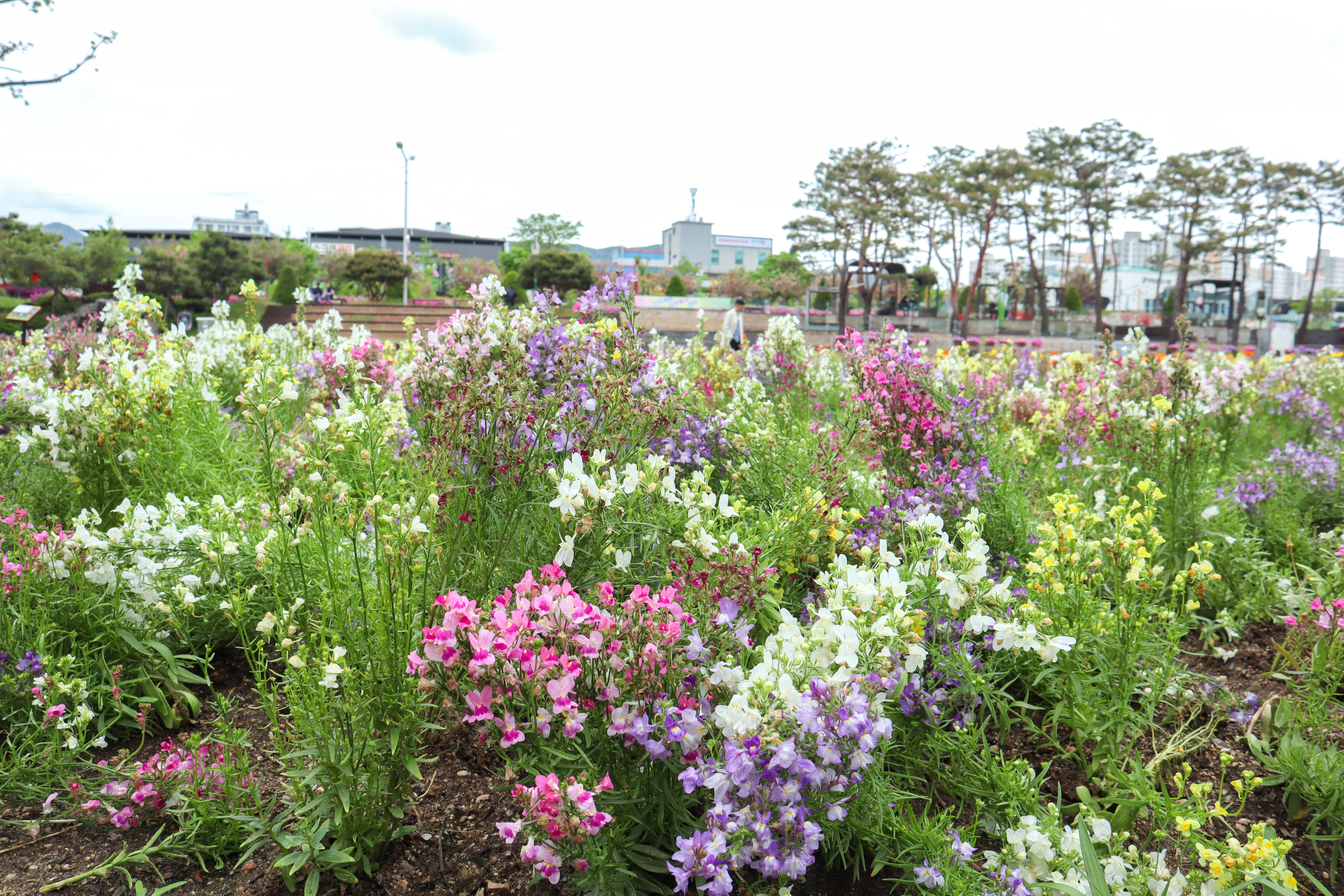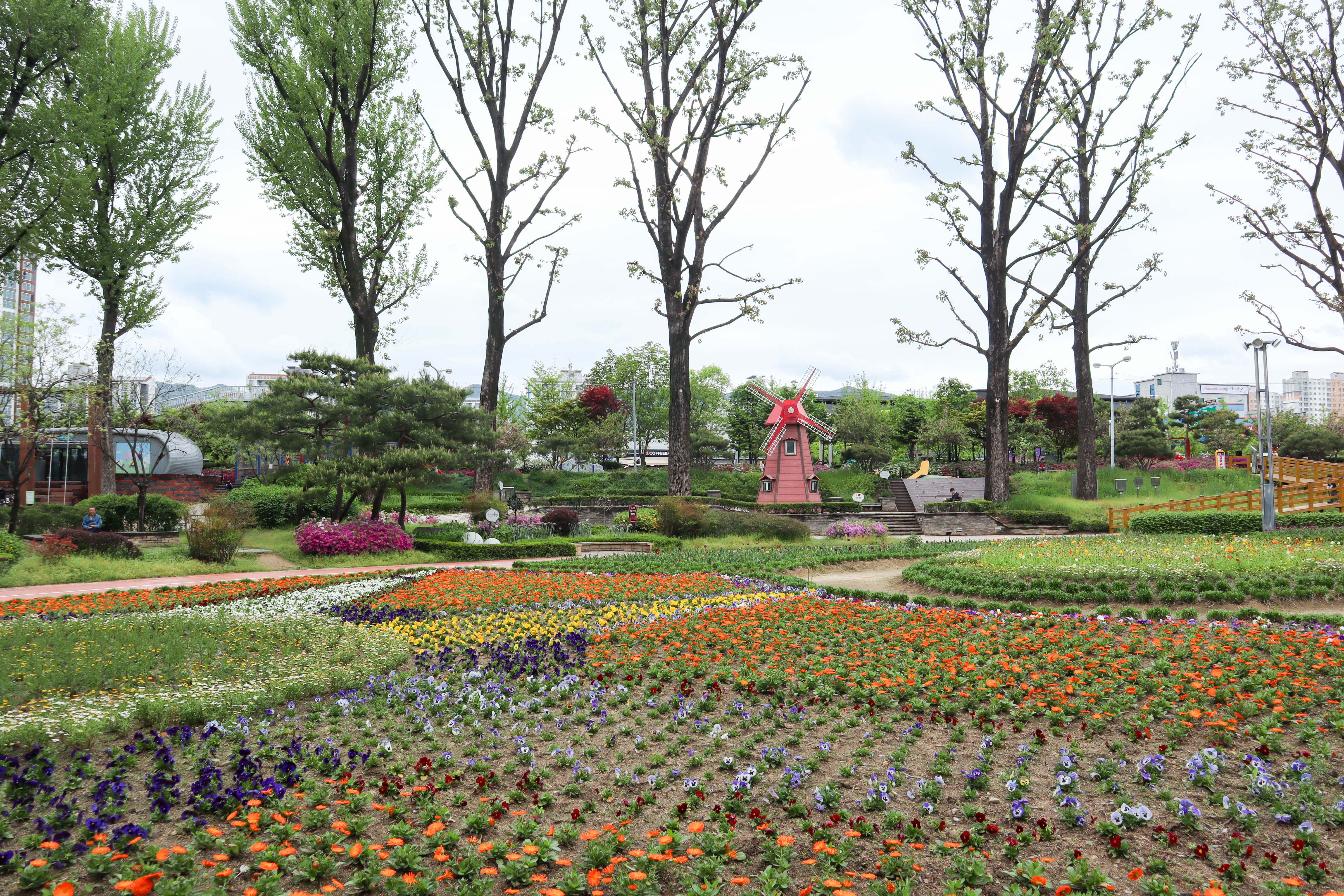 다양한 봄꽃들이 꽃밭을 가득 채우고 있어서