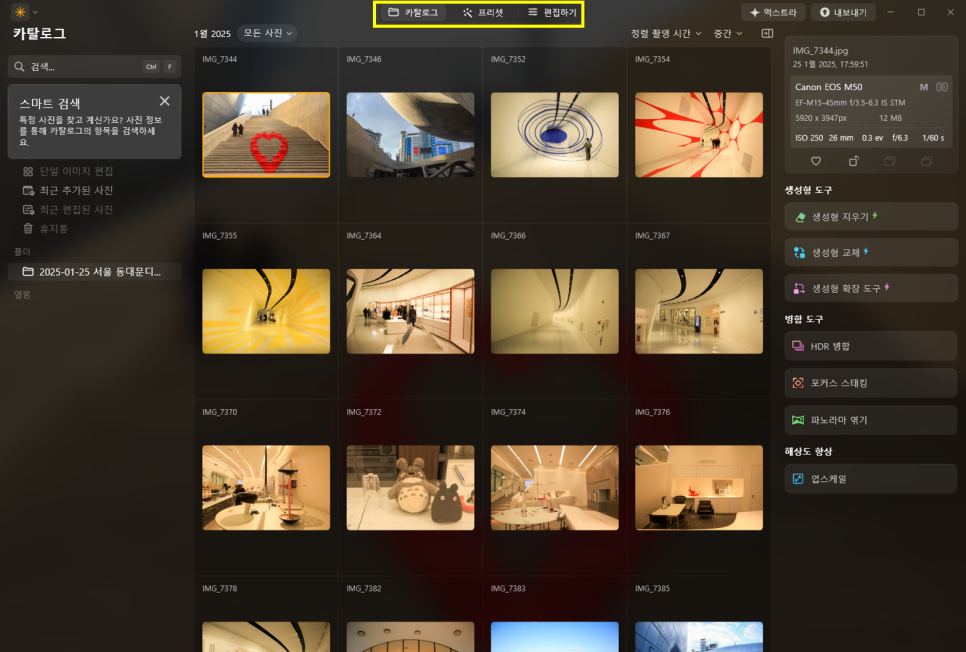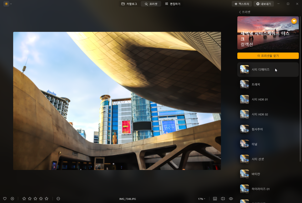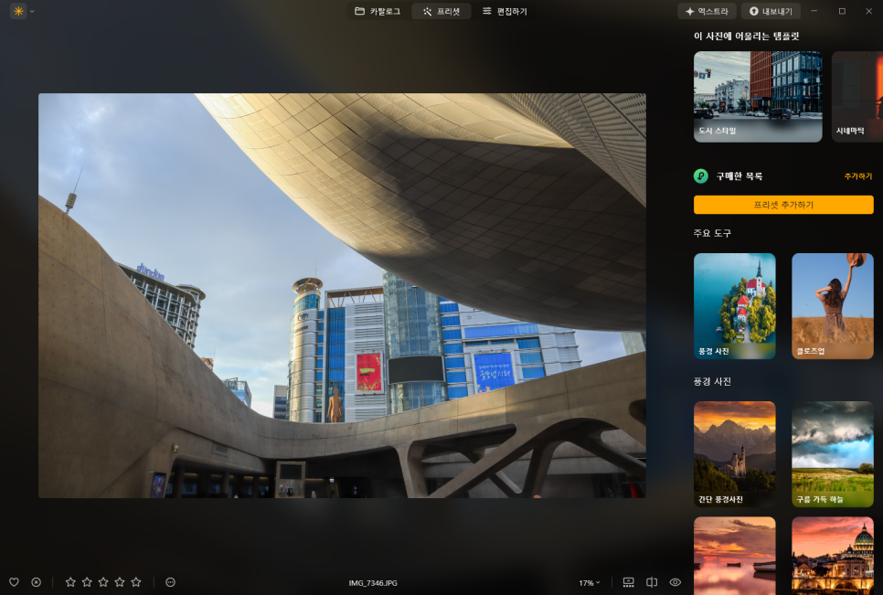 상단 메뉴가 카탈로그, 프리셋, 편집하기로