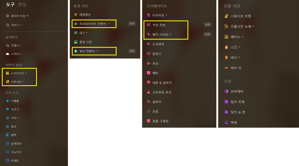 크리에이티브 기능으로는 색상 전송과