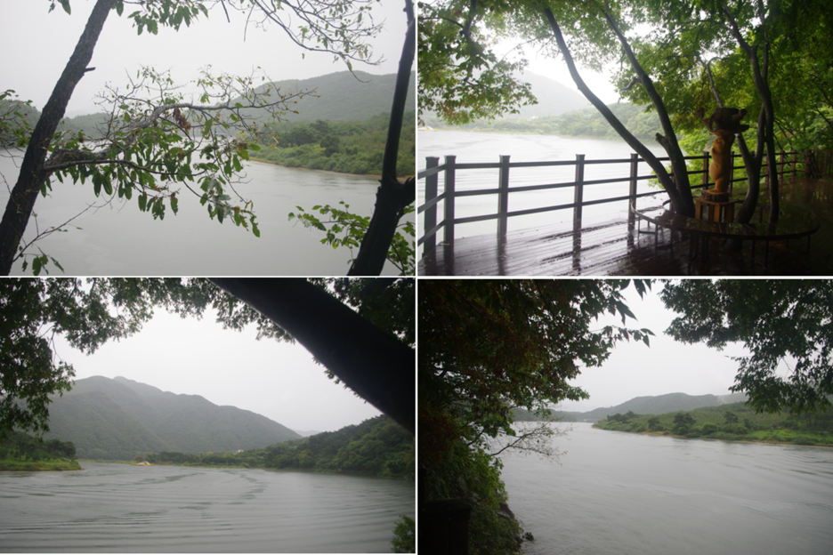 여행의 끝이 얼마 남지 않았습니다. 저기 산막이 마을이 보이네요.
