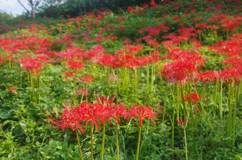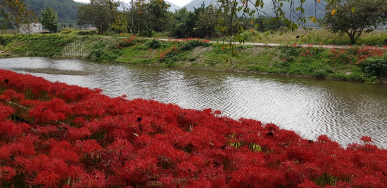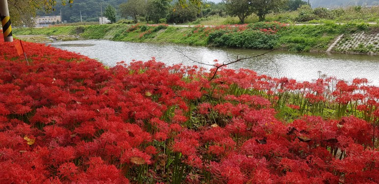 어느 길이나 어느 쪽이나 모두 상사화가 만개하여 웃고 있습니다.