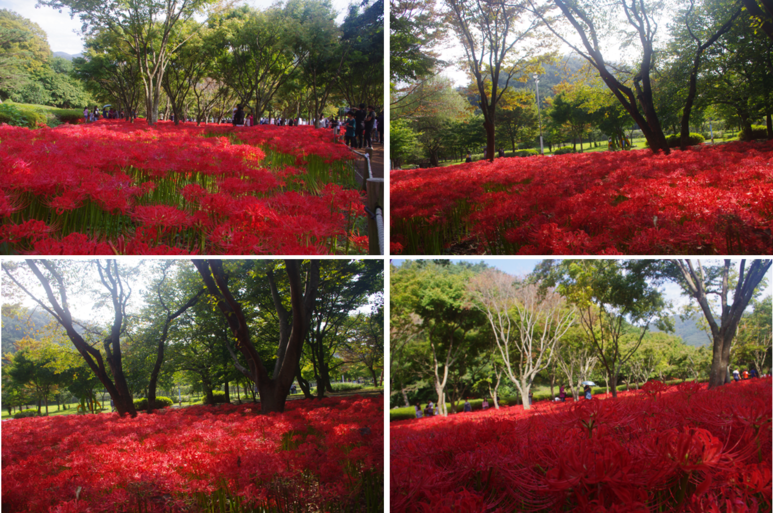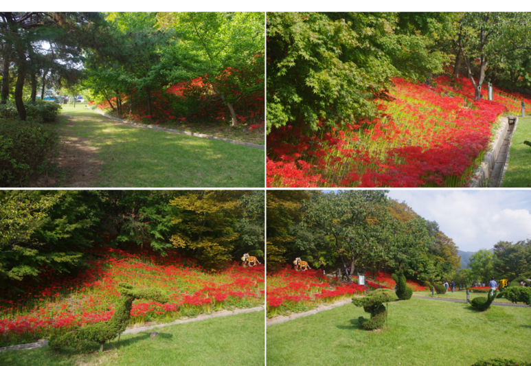 제가 먼저 분당중앙공원을 보고 갔는데, 여기는 비교 대상이 아닙니다. 엄청난 규모가 입을 다물지 못하게 합니다. 드문드문 심은 게 아니고 빽빽하게 심어서 붉은 기운이 엄청납니다. 상사화를 보고자 하신다면 여기가 진리입니다. 가족, 친구, 연인, 단체 누구나 좋아할 곳입니다.