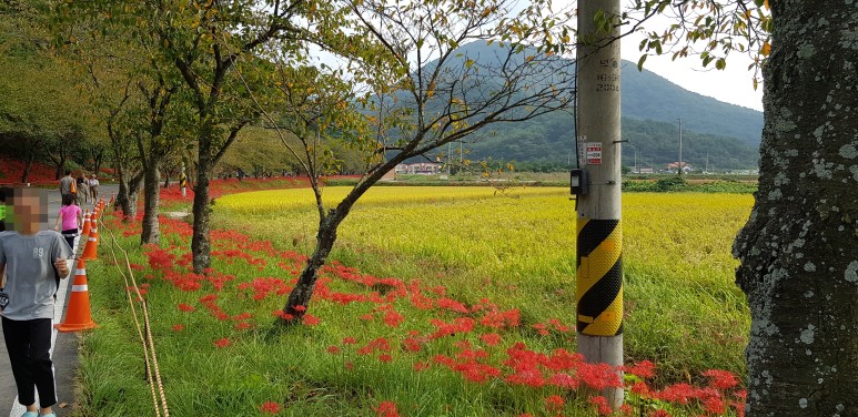 나가는 길에 다시 한번 둘러봅니다. 들녁의 벼의 노란색과 빨간 상사화의 색감이 아주 좋아보입니다.