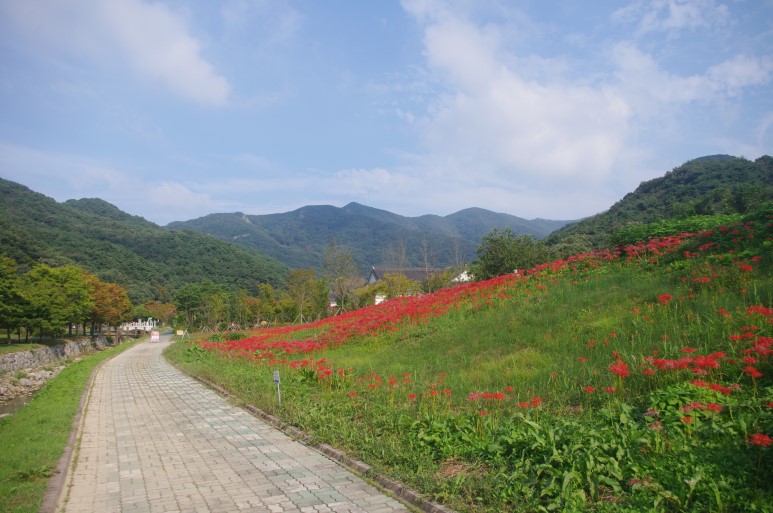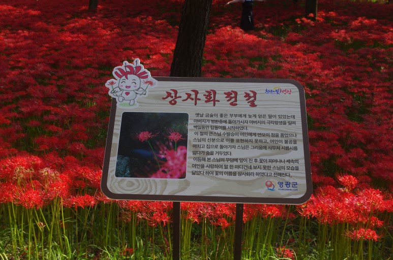 쉬어 갈수 있는 정자들도 이곳저곳이 있구요, 상사화의 역사를 알 수 있는 설명도 붙어 있습니다.