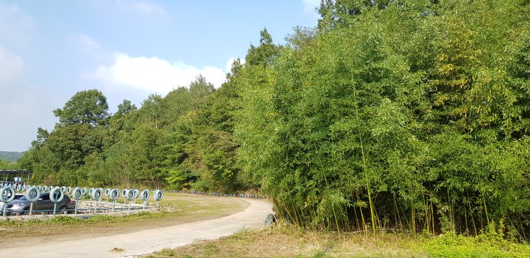 이제 이 대나무 앞이 임시주차장입니다. 다 왔네요.