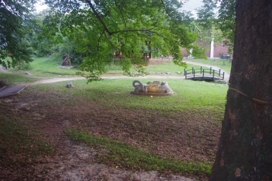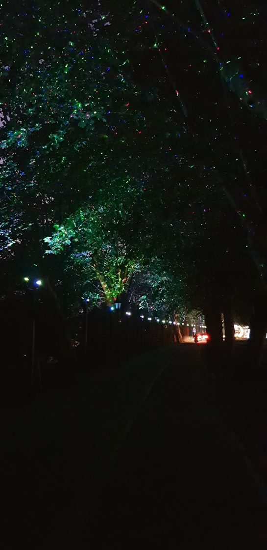 사진을 찍기도 힘들 정도로 어두워졌네요. 다리를 건너니 길에 있는 나무에 살짝 불이 들어옵니다. 무슨 반딧불같이 보이도록 되어있네요. 그런데 사진을 찍기엔 너무 약한 불입니다.