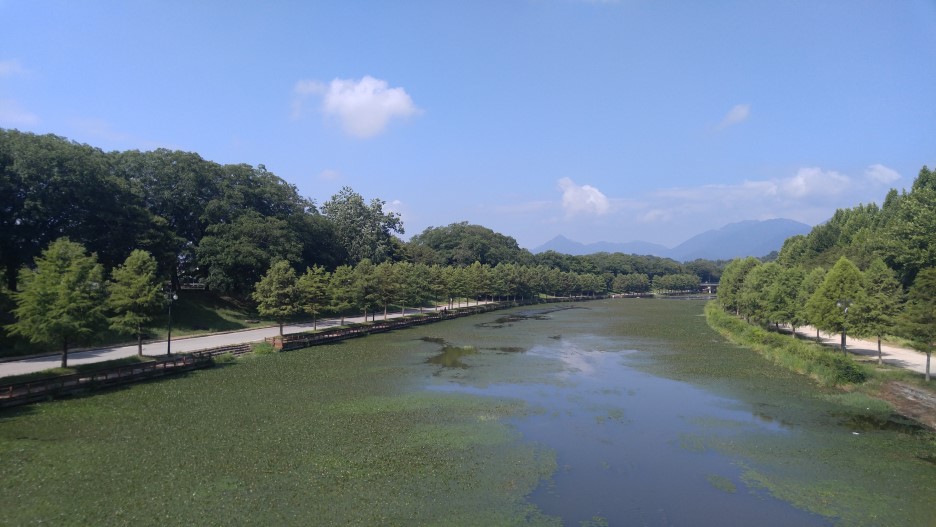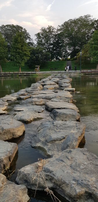 저는 노점상들이 있는 곳을 지나서 걸어가다가 돌로 된 강을 건너 관방제림 걸어 메타스퀘이어 길까지 갔다 돌아오는 경로를 이용하겠습니다.
