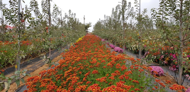 그리고 사과나무 사이에 국화를 심어 놓은 모습입니다("사과과수원 속 국화").