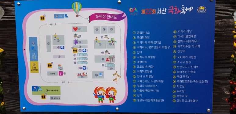 국화축제는 한때이므로 날짜를 잘 맞추어 가야합니다. 11월 11일까지 축제 기간이니 이번 주까지 가셔야겠고요. 주로 단체나 가족끼리 많이들 가십니다. 조금은 5일장 분위기가 나므로 전통 국화축제와는 색다른 느낌이구요, 이 부분은 개인마다 호불호가 있을 수도 있겠습니다. 체험 행사나 공연도 하니 시간이 있으시면 구경하시면 좋겠습니다. 한 바퀴 구경하는데 약 1시간 소요됩니다.