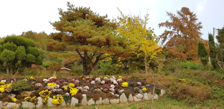 제가 갔을 때가 11월 초였기에 아직 은행나무가 완전히 단풍이 들지는 않았습니다. 그래서 녹색이 보이는데 아마도 11월 중순이면 많이 떨어진 상태일 것 같습니다. 하여간 은행나무에 은행잎이 없어도 시골 구경은 잘 할 수 있을 것 같아요.