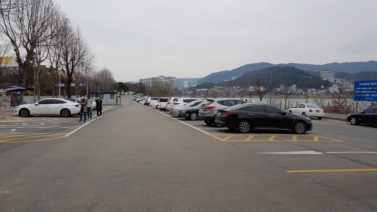 주차장은 호수 주변에 3군데 정도 있는데 가장 큰 주차장은 단국대 바로 옆에 있는 무료 주차장입니다. 어느 주차장이든 주차 후 호수를 한 바퀴 도시면 됩니다. 이 주차장은 단국대 반대편에 있는 작은 주차장입니다.