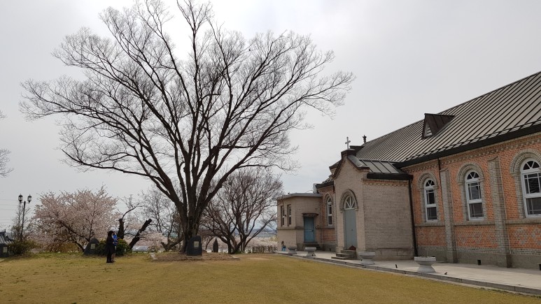 벚꽃과 함께 성당 건물을 찍으면 더욱 멋지구요. 어느 유럽에 온 듯한 착각이 들 정도입니다.