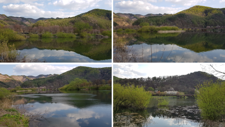 수도권 인근의 어느 정도 규모가 되는 호수공원은 대부분 가봤지만 아직도 국내에는 호수공원이라는 이름은 아니지만 많은 저수지가 있더라구요. 그래서 요즘은 저수지 쪽을 공략하고 있는데 저수지는 가는 곳마다 호불호가 좀 갈립니다. 어느 저수지는 그냥 저수지일 뿐이고 또 어느 저수지는 낚시터일 뿐이더라구요. 그리고 주변 산책로가 없는 경우도 있고 볼거리가 없는 경우도 있어 그냥 발길을 돌리는 경우도 있습니다. 그런데 이곳은 전혀 예상치 못한 풍경에 120% 만족한 곳입니다.