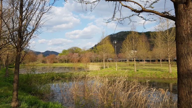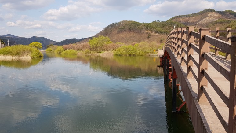 이제 다시 되돌아가서 다리를 건너 풍경을 구경하면서 저수지쪽으로 가고 있습니다.