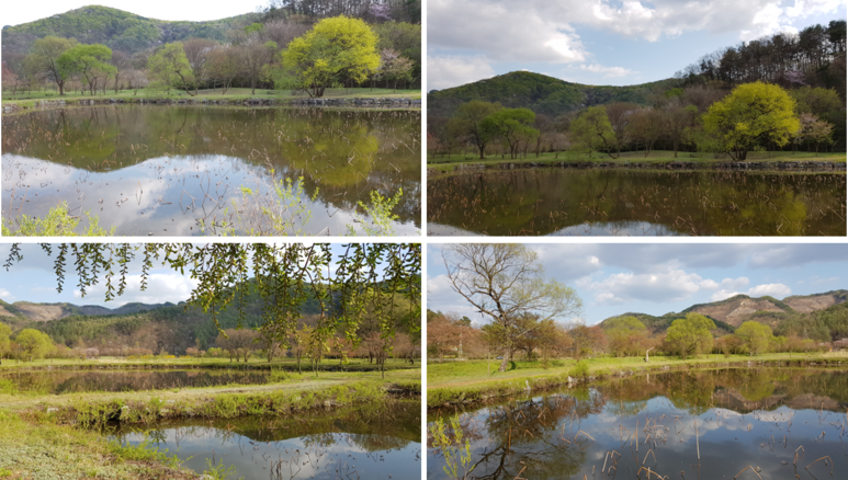 한참을 구경하게 되네요. 나무 한그루, 루르른 풀들, 그리고 파란 하늘과 그걸 꼭 닯은 연못이 저절로 시를 짓고 싶어지게 합니다.