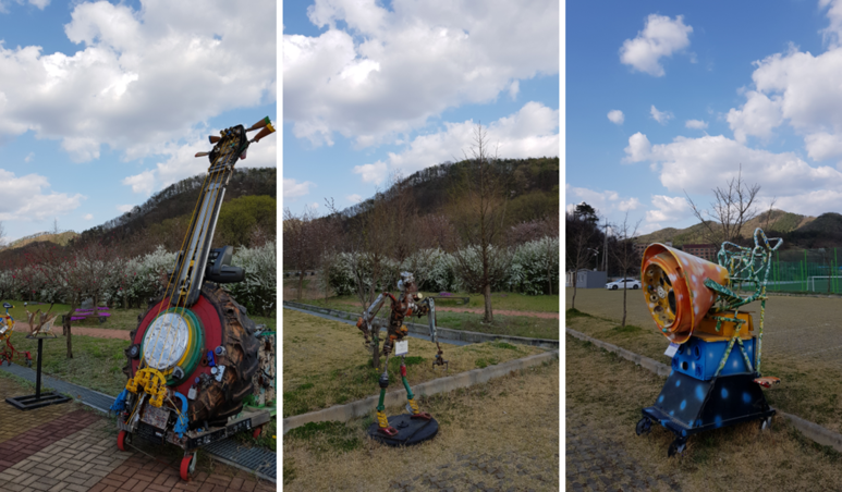 품바재생체험장과 관련이 있어 보이는 조형물들이 여럿 있습니다. 품바 인형들도 보이네요.