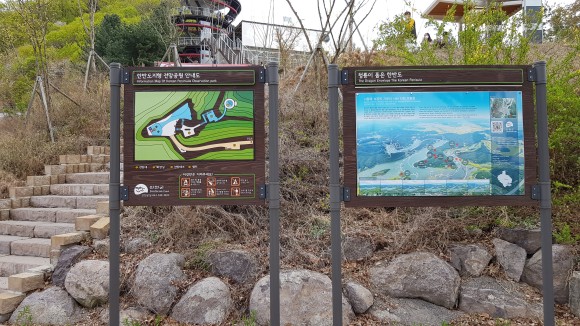 그리고 주차장 앞에는 안내도도 있지요. 한반도지형의 구분 방법을 알려주고 있으니 먼저 보시고 전망대로 올라가시기 바랍니다.