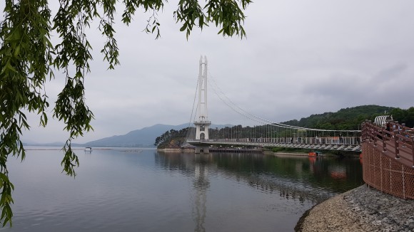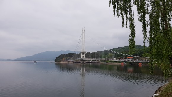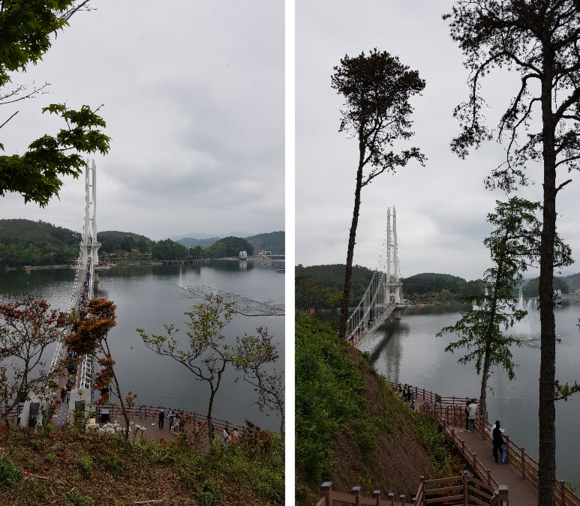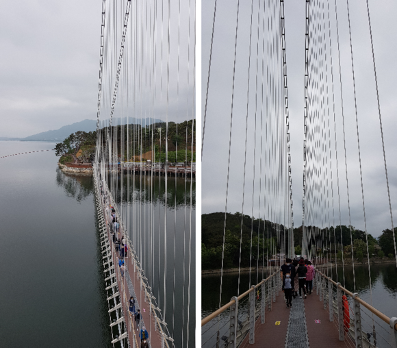 도로에서 조금씩 이동하면서 찍은 출렁다리 모습입니다.