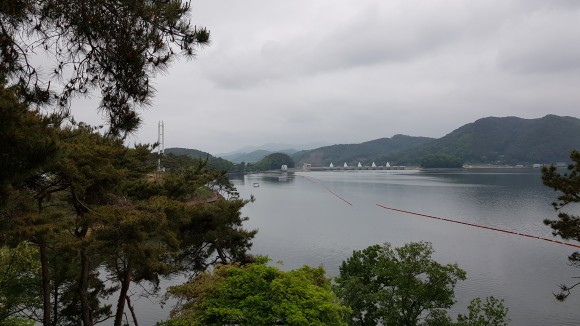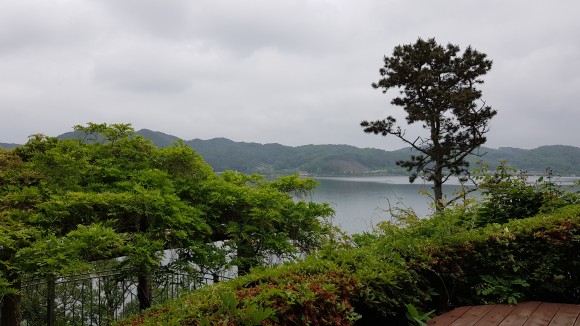 산책로를 걸으면서 바라보는 호수가 시원한 느낌입니다. 저번에 왔을 때는 많이 더웠는데 오늘은 전날 비가 와서 그런지 더운 느낌은 많이 없습니다. 다만 날씨가 썩 좋은 건 아니네요.