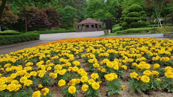 수돗가 앞에 있는 꽃들입니다.