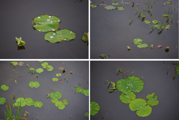 하지만 아직은 여기는 연꽃은 안보입니다. 다만 비가 온 뒤라 물방울이 연잎에 방울방울 보이더라구요.