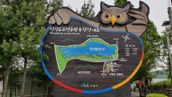 신정호국민관광지(신정호공원, 신정호호수공원)은 기본적으로 신정호저수지가 있으므로 수변산책로를 이용해서 걷기도 좋구요. 넓은 잔디밭과 공연장도 있고, 수상스키도 탈 수가 있으니 목적에 따라 가시면 좋을 것 같습니다. 저는 역시 호수 둘레길을 도는 목적으로 갔다가 반만 돌고 왔는데 중간 중간에 있는 작은 공간이 많아 구경하면서 가느라고 대략 1시간 30분 정도 소요가 되었습니다. 주로 가족끼리, 연인끼리 많이들 찾아 오는 것 같아요.
