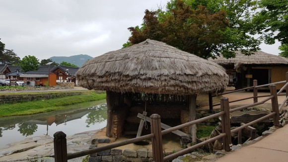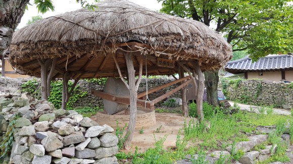 오른쪽으로 보이는 초가집도 무척 정겹습니다. 디딜방아도 살짝 보이네요.