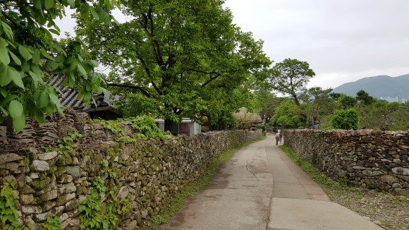 돌담을 따라 걸으면 좋은 느낌을 얻을 수 있는 것 같아요.