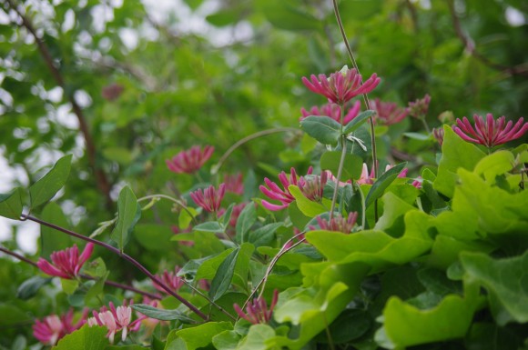 담너머에는 이 꽃도 피어 있습니다. 붉은인동꽃입니다.