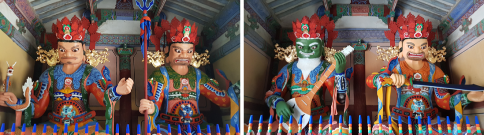 역시 안에는 사대천왕이 이곳을 지나는 모든 사람들을 사찰하고 보호하며 지키고 서 있지요.