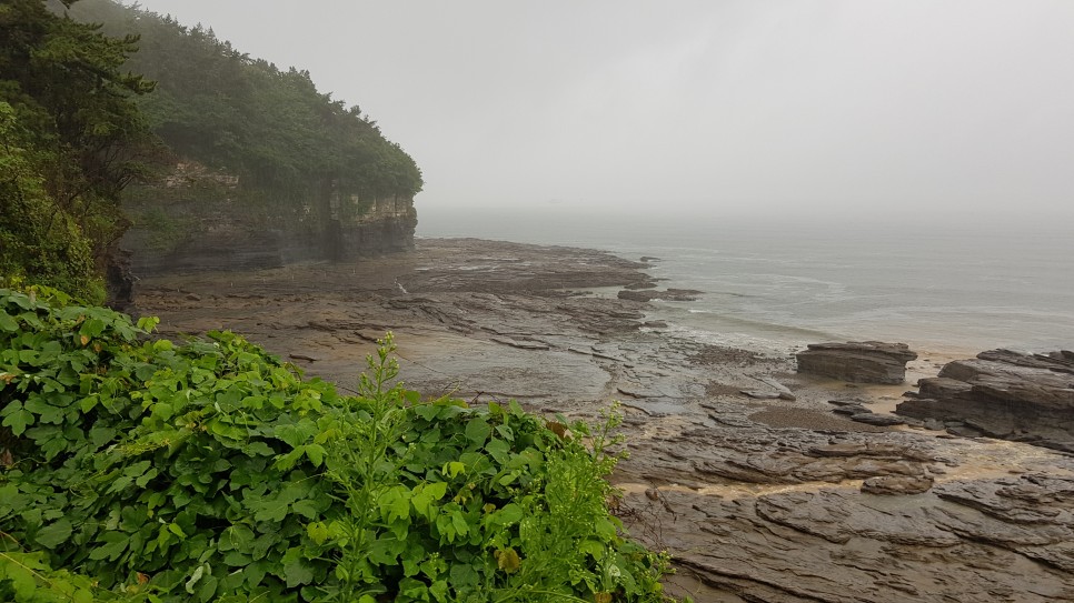 혹시나 멀리서도 해식동굴이나 해안돌개구멍 같은 것이 보일까 눈을 부라리며 바라보고는 있지만 보이지는 않는군요. 얄미운 비....^.^
