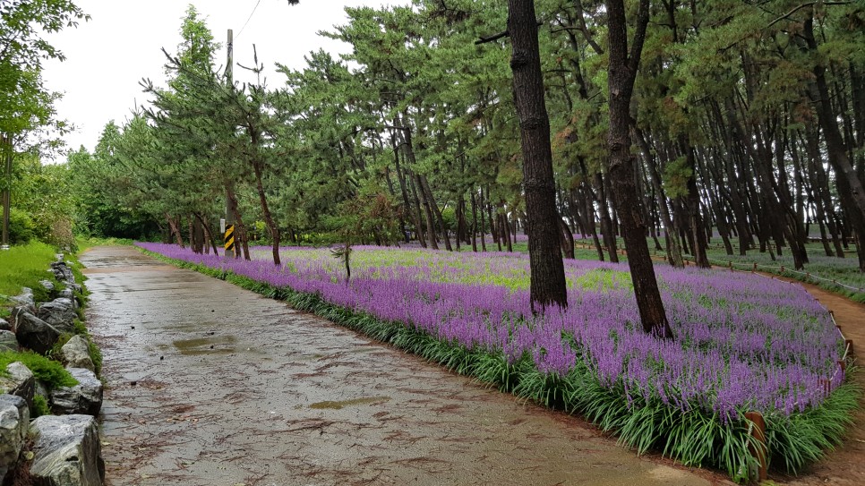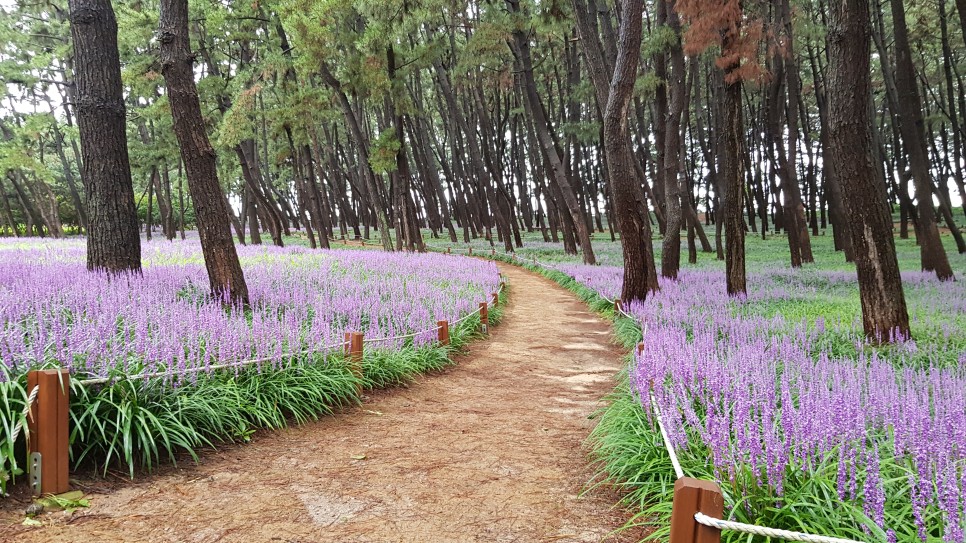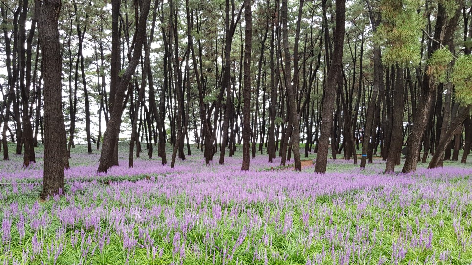 주차장은 송림숲 입구 쪽에 있는데 네비가 알려주는 곳으로 가시면 됩니다. 주차 후 송림숲을 걸어서 약 700미터 정도 가시면 되지요. 가시는 길에 맥문동을 구경하시면 더욱 좋습니다.