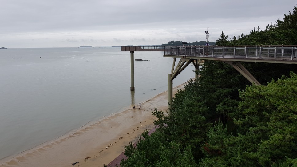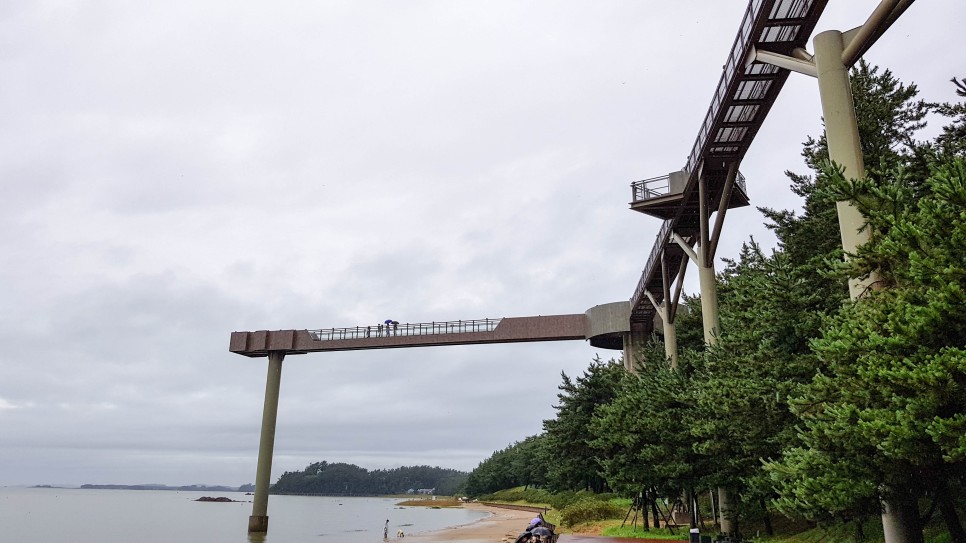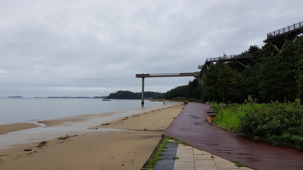 모래사장으로는 내려가지 않고 그 위쪽 나무 데크길만 걸어가도록 할께요. 그러면서 스카이워크를 구경하는 재미도 있지요.