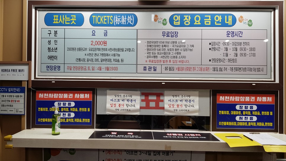 - 입장료: 2,000원(서천사랑상품권으로 교환해 주니 무료이지요)