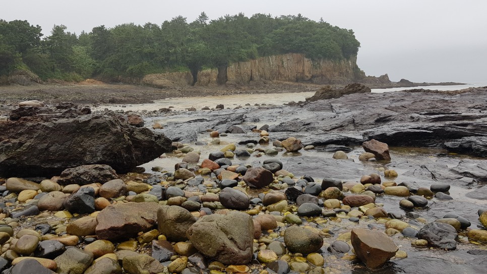 바다 근처에는 둥글둥글한 돌들이 보이구요. 채석강에서는 이런 돌들은 안보였지요. 그 부분이 다른점이겠네요.