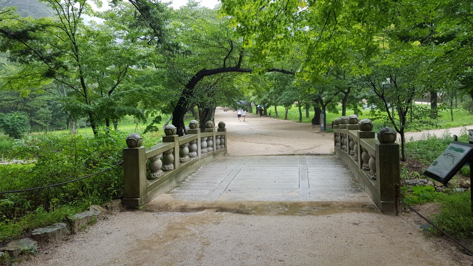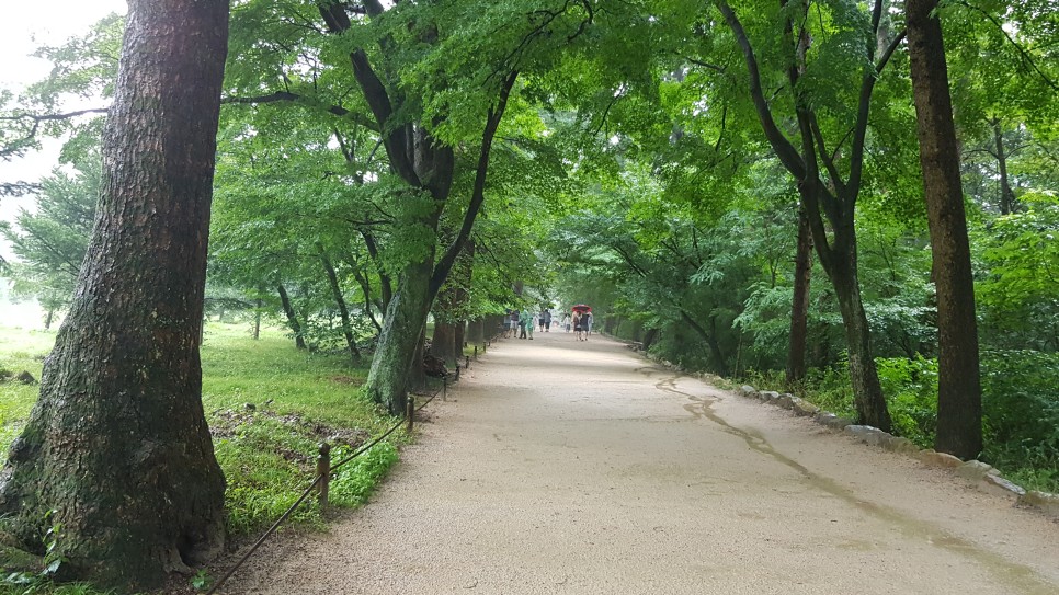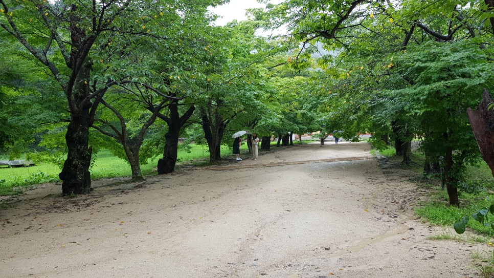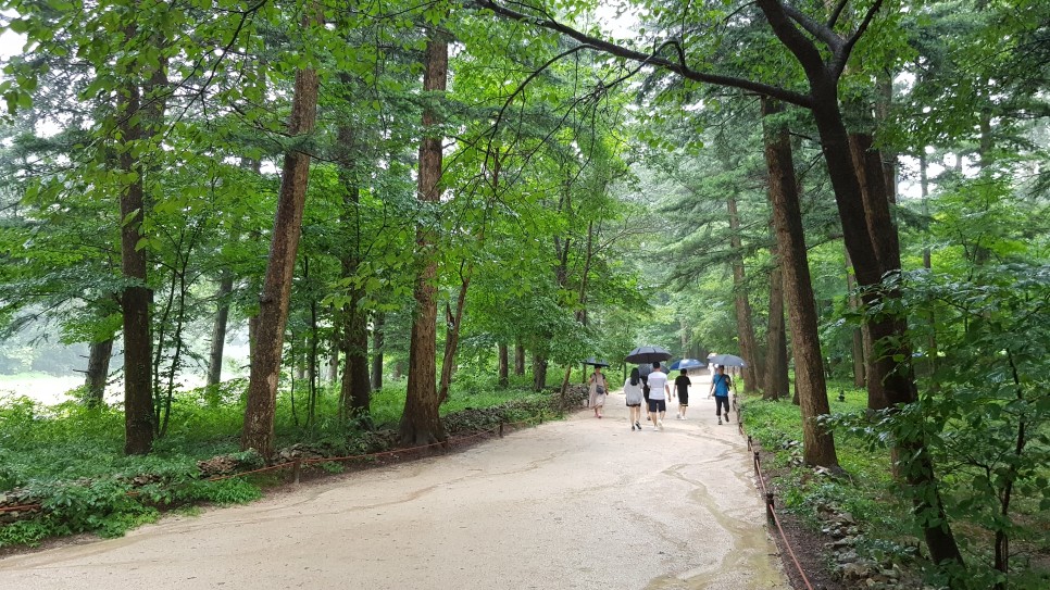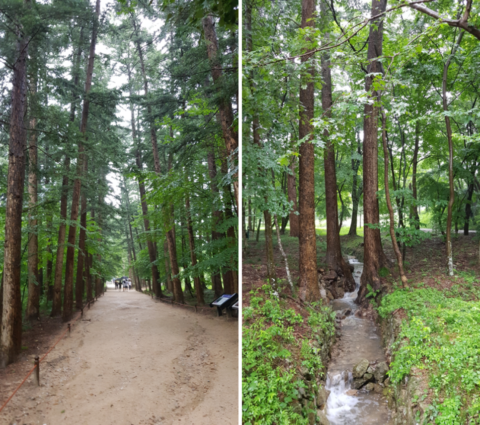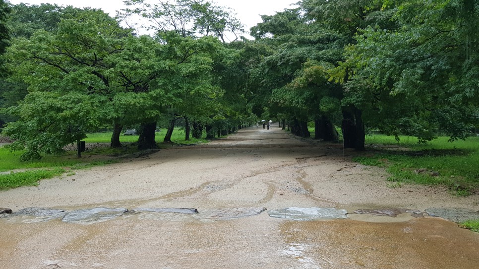 방문 시점에는 비가 오락가락하고 있어서 우산을 썼지만 이런 나무들이 있는 곳은 햇빛이 있는 날에도 우산을 쓰지 않아도 좋은 곳이지요. 그리고 가다 보면 물이 흐르는 곳도 만나게 됩니다. 비가 온 뒤라 물이 많아 보이네요.