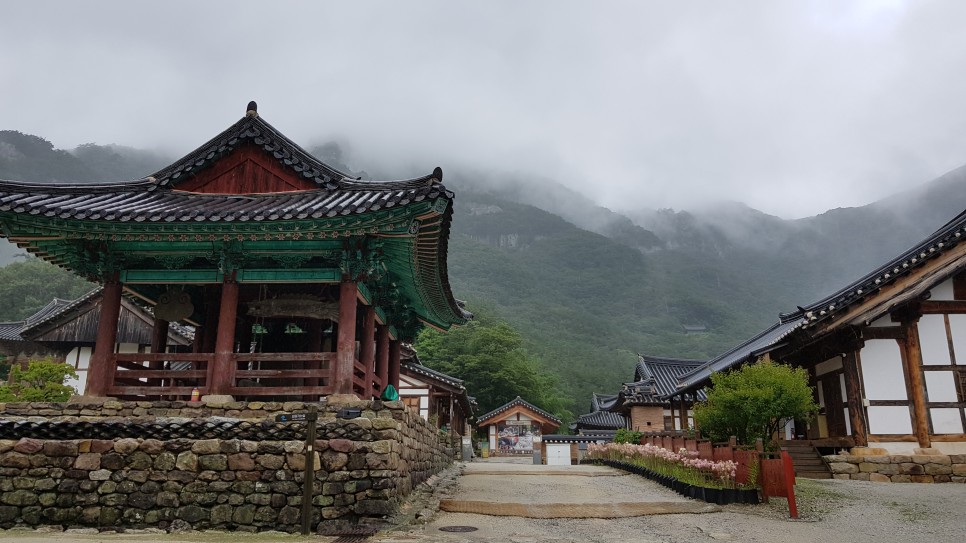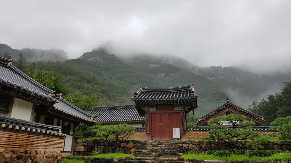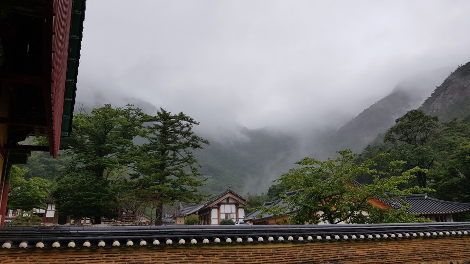 살며시 안쪽을 담 너머로 바라보니 산을 내려온 안개들이 천년고찰을 집어삼킬 듯 거대한 모습을 보이고 있더라구요.
