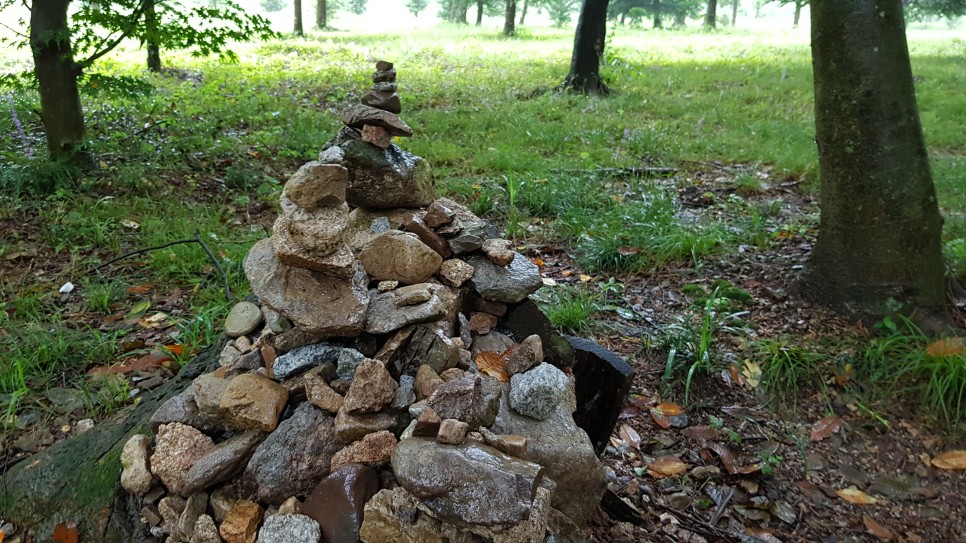 나무들이 양쪽으로 서 있는 길을 걸어가다 보면 양쪽으로 여러 가지 볼거리가 나타나는데... 먼저 누군가의 소원들이 쌓여서 산을 이루고 있는 돌탑도 있지요. 그런데 궁금한 것은 보통 저렇게 올려 놓은 돌들은 왜 잘 무너지지 않는 것일까요?