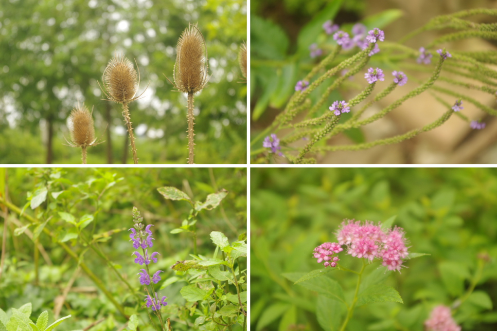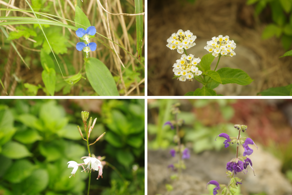 주변에 보이는 꽃은 닭의장풀, 란타나, 가우라, 골무꽃이지요.
