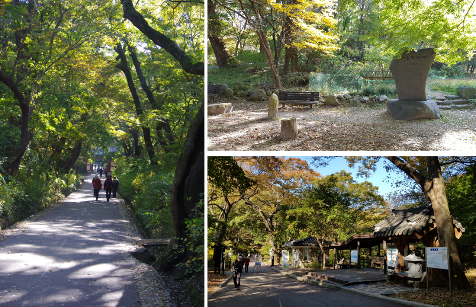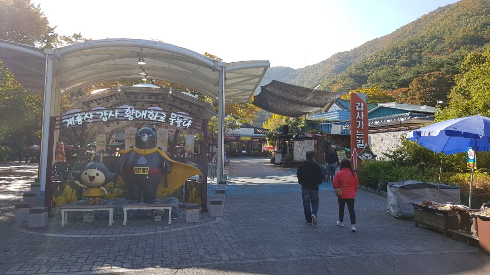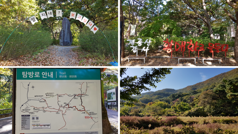 가는 길에도 이렇게 조형물들이 보이니 심심하지는 않습니다. 그리고 갑사와 동학사를 아우르는 계룡산 전체 등산로에 대한 안내도 있으니 등산을 하시는 분들은 참고를 하시면 좋겠지요. 방문 시점 현재 주변의 산은 단풍이 약 30% 정도 물든 상태인데 아마도 11월 초 이후에는 단풍도 꽤 좋을 것으로 보여집니다. 같은 계룡산인데 지역에 따라 단풍이 물드는 시기가 다르네요.