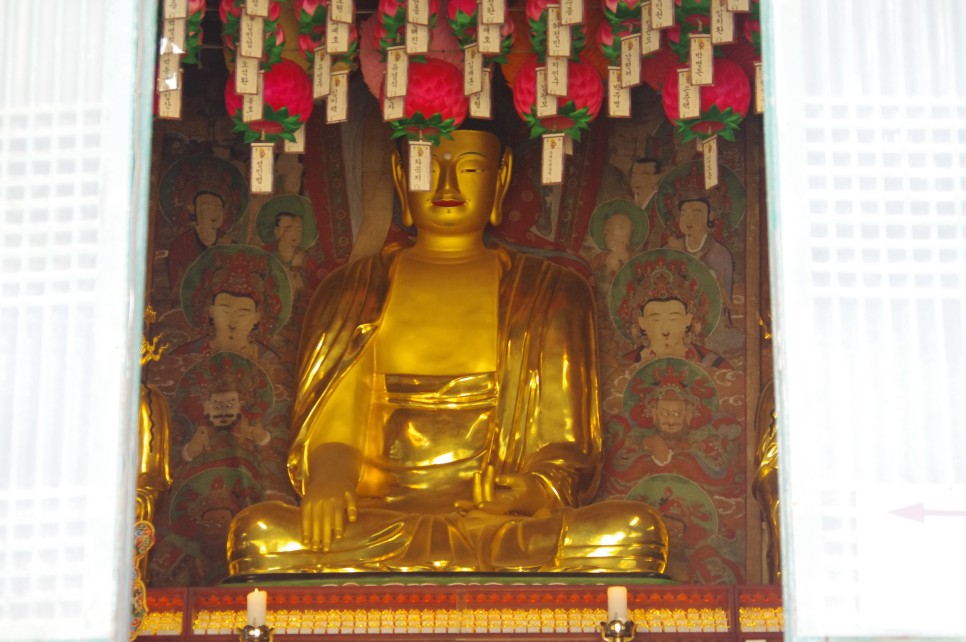 대웅전 내에 있는 석가모니불의 모습인데 너무 멀어서 이렇게 밖에 안 나오네요.