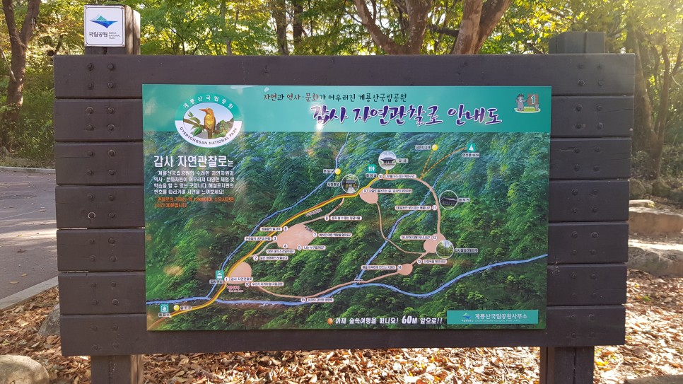 다시 얼마쯤 올라가니 이 안내도가 나타납니다. 갑사로 가는 길에 자연관찰로가 따로 만들어져 있더라구요. 내려올 때는 자연관찰로를 이용해 보도록 하겠습니다.