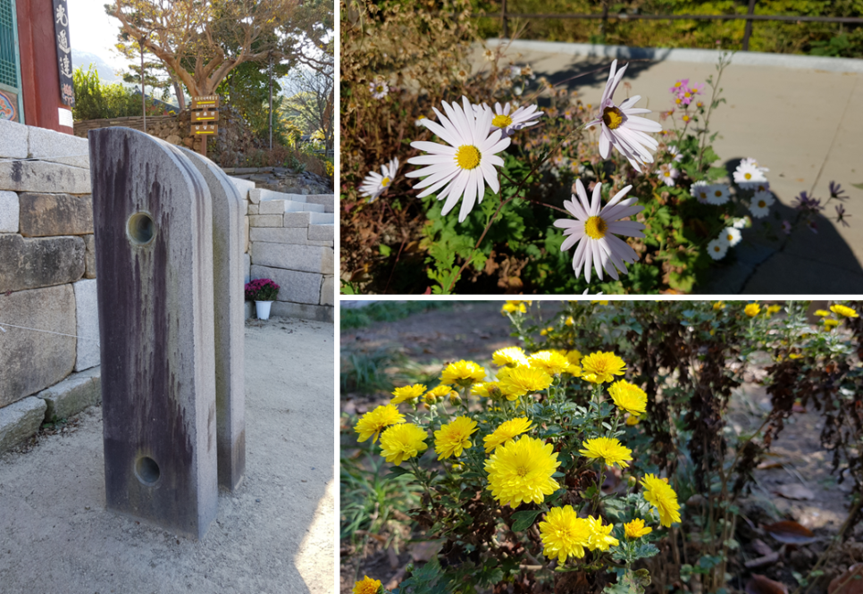 대웅전 앞에 있는 이 석물이 아마도 그런 역사 속에서 남은 것인 듯하네요. 주변에 보이는 꽃들도 함께 구경하세요.