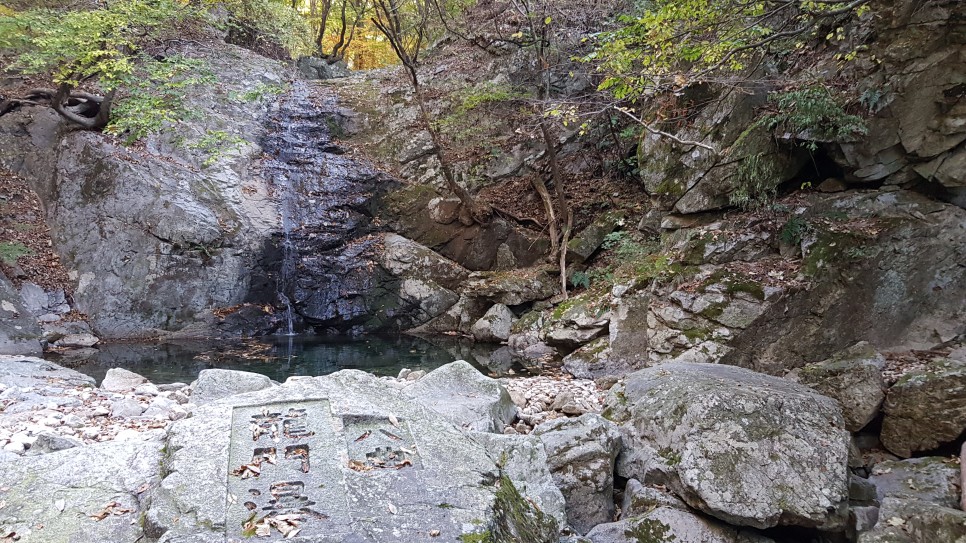 그렇게 해서 용문폭포에 도착을 했는데 일단 전망대가 있기는 한데 용문폭포의 규모가 참 안타까운 지경이네요. 물이 없어서 그런 것이라 이해하려 노력해 봅니다.