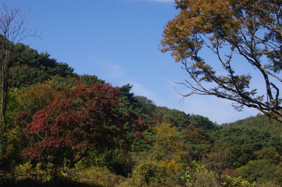 이제 천천히 길을 따라 걸어 주차장으로 돌아가는 길이지요. 아직은 단풍이 들지를 않아 아쉬운 모습이네요.
