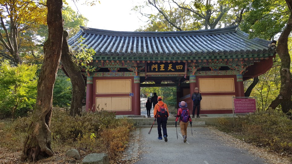 사천왕문은 일주문을 지나면 나타나는 문으로 불법을 수호하는 사천왕을 모시는 곳으로 이 문의 의미는 사람들로 하여금 사찰이 이 수호신들이 지키는 청정도량이라는 의미를 주고 수도자에게는 청정한 경지에 이르고 있다는 뜻도 포함하고 있다고 합니다.