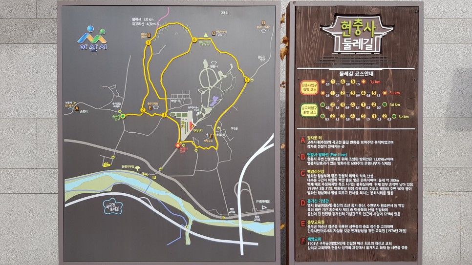 입구 앞에 이 안내도가 있으니 한번 보시고 가시거나 준비된 종이 안내도를 지참하고 구경하시면 더 좋습니다. 현충사 뒤쪽으로 산책로도 있어서 더 걷기를 원하시는 분은 이용을 하시면 됩니다.