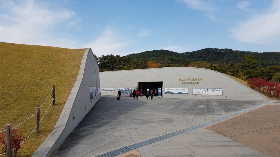제일 먼저 눈에 들어오는 곳은 이 언덕인데 이 언덕은 무덤이라고 생각할 수도 있겠더라구요. 하지만 이것은 충무공이순신기념관이 있는 곳입니다.